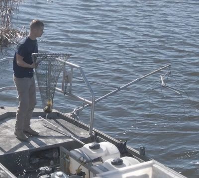 On the scheduled day of your electrofishing survey, our staff will arrive with the electrofishing boat and necessary equipment. We must be able to access your pond with the boat to complete the electrofishing survey. Depending on the size of the pond, a survey can take anywhere from a couple hours to a half day. While you are more than welcome to watch from the pond bank, we cannot allow anyone except our trained staff on the boat or in the water during the entirety of the survey.